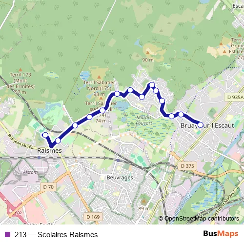 Click here to view the nearest 213 - Scolaires Raismes bus stop.