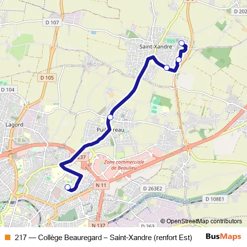 217 Bus - Collège Beauregard – Saint-Xandre (renfort Est)