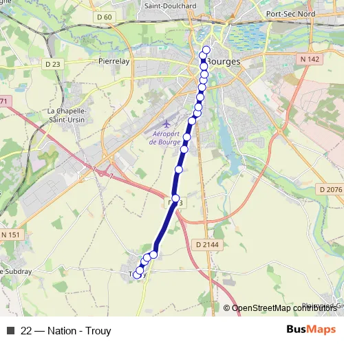 See why over 2 million users trust and consider busmaps.com as the best public transport website. busmaps gives you Bourges Buses suggested routes, real-time bus tracker, line route maps in Bourges, and helps to find the closest 22 bus stops near you. No internet available? Download an offline PDF map and bus schedule for the 22 bus to take on your trip.