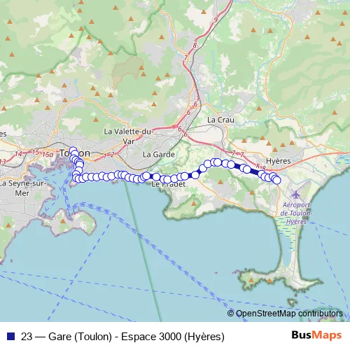 23 (Gare (Toulon) - Espace 3000 (Hyères)) Bus in Toulon