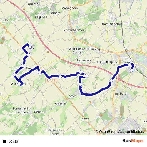 See why over 2 million users trust and consider busmaps.com as the best public transport website. busmaps gives you Ligny-les-Aire Buses suggested routes, real-time bus tracker, line route maps in Ligny-les-Aire, and helps to find the closest 2303 bus stops near you. No internet available? Download an offline PDF map and bus schedule for the 2303 bus to take on your trip.