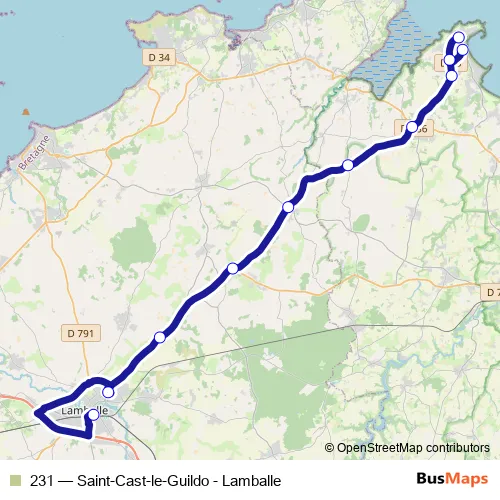 Click here to view the nearest 231 - Saint-Cast-le-Guildo - Lamballe bus stop.