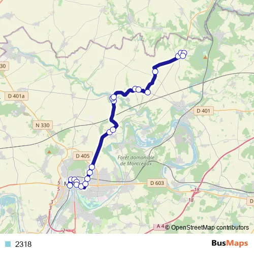 The first stop of the 2318 bus route is Gare de Meaux (Quai G) and the last stop is Ancien Calvaire. 2318 is operational during everyday.