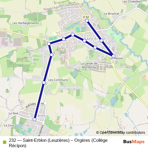 Bus 232 - Saint-Erblon (Leuzières) – Orgères (Collège Récipon): Full Schedule in Saint-Erblon