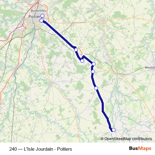 See why over 2 million users trust and consider busmaps.com as the best public transport website. busmaps gives you Poitiers Buses suggested routes, real-time bus tracker, line route maps in Poitiers, and helps to find the closest 240 bus stops near you. No internet available? Download an offline PDF map and bus schedule for the 240 bus to take on your trip.