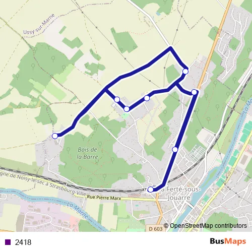 The first stop of the 2418 bus route is Gare de La Ferté-sous-Jouarre (Quai C) and the last stop is Agouries. 2418 is operational during everyday.