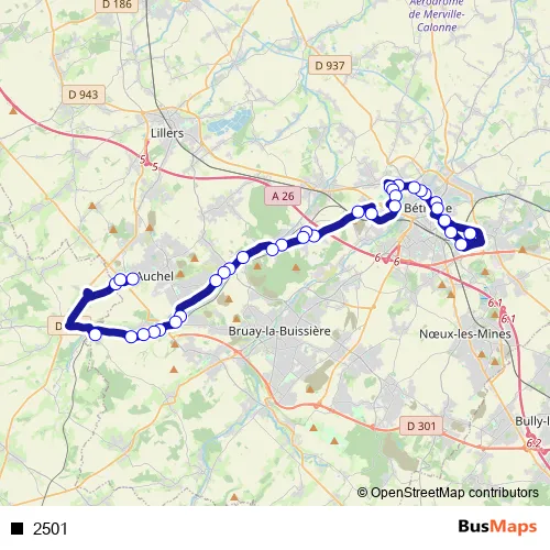 See why over 2 million users trust and consider busmaps.com as the best public transport website. busmaps gives you Bethune Buses suggested routes, real-time bus tracker, line route maps in Bethune, and helps to find the closest 2501 bus stops near you. No internet available? Download an offline PDF map and bus schedule for the 2501 bus to take on your trip.