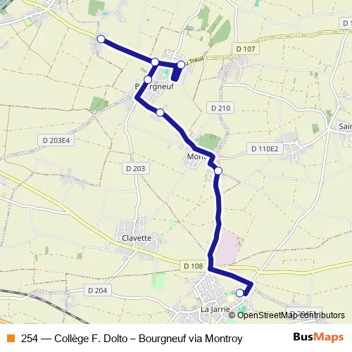 Click here to view the nearest 254 - Collège F. Dolto – Bourgneuf via Montroy bus stop.