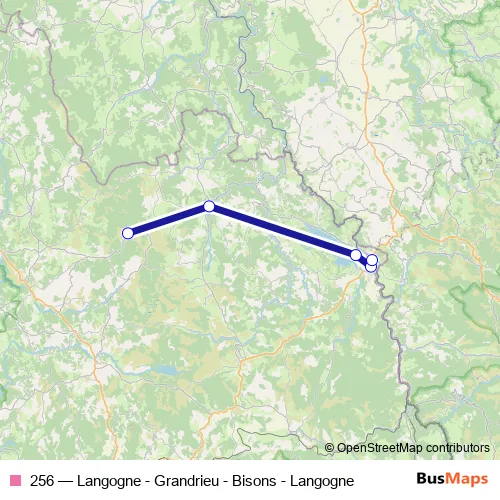 The first stop of the 256 bus route is Saint Denis EN Margeride - ST-Denis-EN-Marg. - Bqe Bouviers and the last stop is Langogne - Langogne - Gare Sncf. 256 (Langogne - Grandrieu - Bisons - Langogne) is operational during everyday.