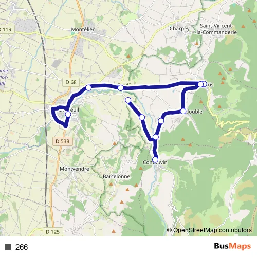 See why over 2 million users trust and consider busmaps.com as the best public transport website. busmaps gives you Valence Buses suggested routes, real-time bus tracker, line route maps in Valence, and helps to find the closest 266 bus stops near you. No internet available? Download an offline PDF map and bus schedule for the 266 bus to take on your trip.