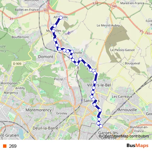 The first stop of the 269 bus route is Mairie / Hôtel de Ville and the last stop is Garges - Sarcelles Rer. 269 is operational during everyday.