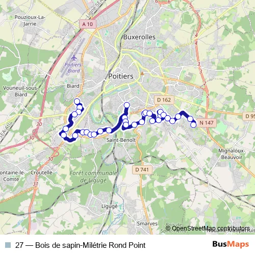 Bus 27 - Bois de sapin-Milétrie Rond Point in Poitiers: Stops & Timetable