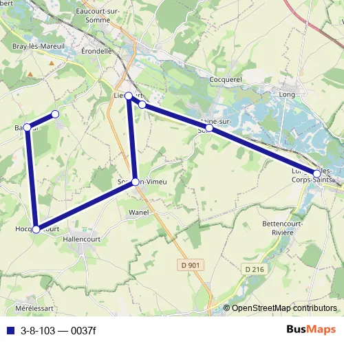 The first stop of the 3-8-103 bus route is Bailleul - Bellifontaine - Rue Maison Brûlée and the last stop is Longpre-LES-Corps-Saints - Collège des Cygnes. 3-8-103 (0037f) is operational during everyday.