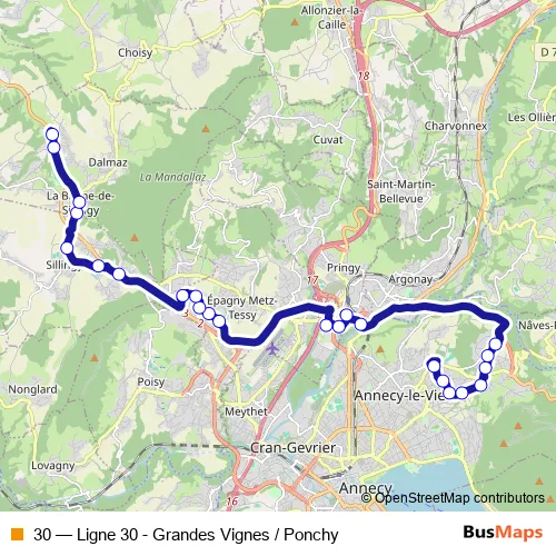 See why over 2 million users trust and consider busmaps.com as the best public transport website. busmaps gives you Annecy Buses suggested routes, real-time bus tracker, line route maps in Annecy, and helps to find the closest 30 bus stops near you. No internet available? Download an offline PDF map and bus schedule for the 30 bus to take on your trip.