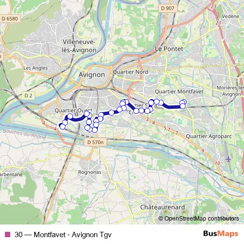 See why over 2 million users trust and consider busmaps.com as the best public transport website. busmaps gives you Avignon Buses suggested routes, real-time bus tracker, line route maps in Avignon, and helps to find the closest 30 bus stops near you. No internet available? Download an offline PDF map and bus schedule for the 30 bus to take on your trip.