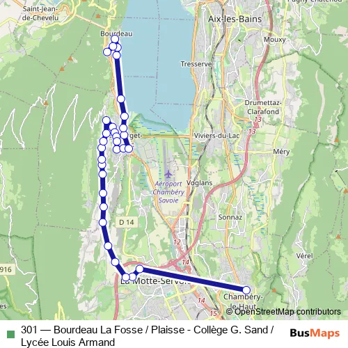 Bus 301 - Bourdeau La Fosse / Plaisse - Collège G. Sand /Lycée Louis Armand Schedule in Chambery