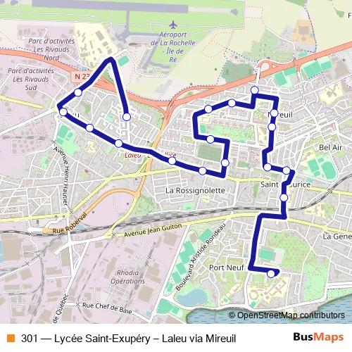 Bus 301 - Lycée Saint-Exupéry – Laleu via Mireuil Schedule in La Rochelle