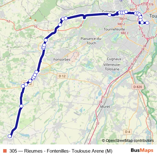 Bus 305 - Rieumes - Fontenilles- Toulouse Arene (M) Schedule in Toulouse