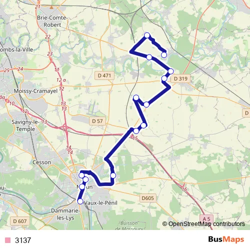 See why over 2 million users trust and consider busmaps.com as the best public transport website. busmaps gives you Melun Buses suggested routes, real-time bus tracker, line route maps in Melun, and helps to find the closest 3137 bus stops near you. No internet available? Download an offline PDF map and bus schedule for the 3137 bus to take on your trip.