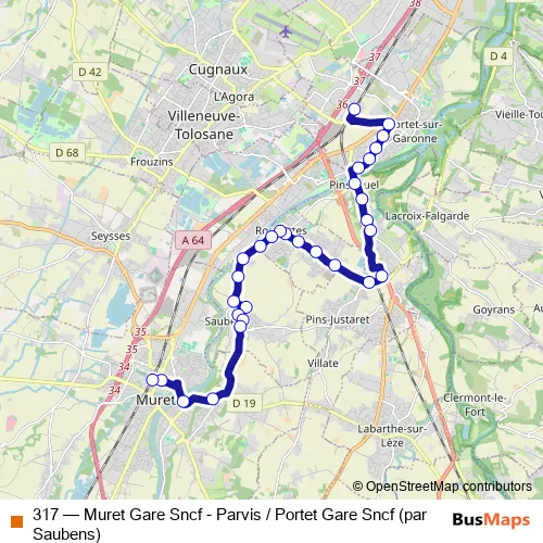 Bus 317 - Muret Gare Sncf - Parvis / Portet Gare Sncf (par Saubens): Full Schedule in Toulouse