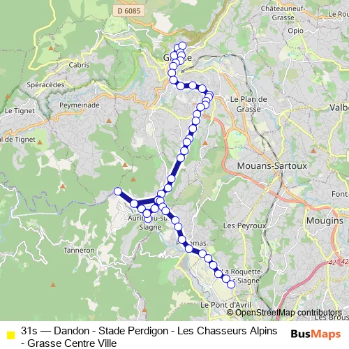 See why over 2 million users trust and consider busmaps.com as the best public transport website. busmaps gives you Grasse Buses suggested routes, real-time bus tracker, line route maps in Grasse, and helps to find the closest 31s bus stops near you. No internet available? Download an offline PDF map and bus schedule for the 31s bus to take on your trip.