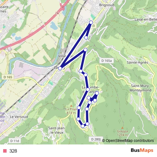 See why over 2 million users trust and consider busmaps.com as the best public transport website. busmaps gives you La Combe-de-Lancey Buses suggested routes, real-time bus tracker, line route maps in La Combe-de-Lancey, and helps to find the closest 328 bus stops near you. No internet available? Download an offline PDF map and bus schedule for the 328 bus to take on your trip.