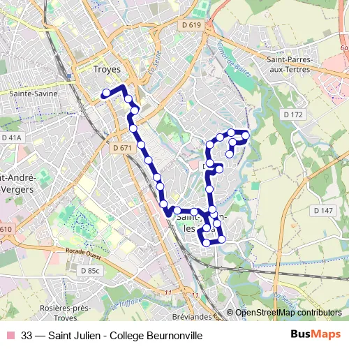 Bus 33 - Saint Julien - College Beurnonville in Troyes: Stops & Timetable