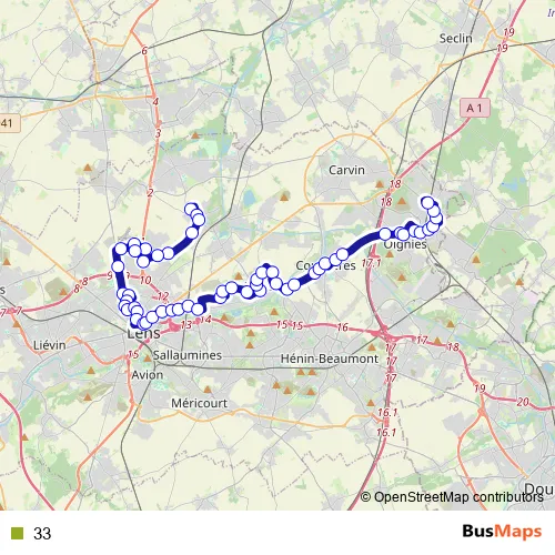 Bus 33 in Lens: Stops & Timetable