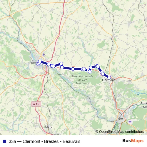 The first stop of the 33a bus route is Gare Routière and the last stop is Gare Sncf. 33a (Clermont - Bresles - Beauvais) is operational during everyday.