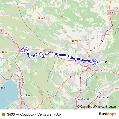 See why over 2 million users trust and consider busmaps.com as the best public transport website. busmaps gives you Aix-en-Provence Buses suggested routes, real-time bus tracker, line route maps in Aix-en-Provence, and helps to find the closest 3400 bus stops near you. No internet available? Download an offline PDF map and bus schedule for the 3400 bus to take on your trip.