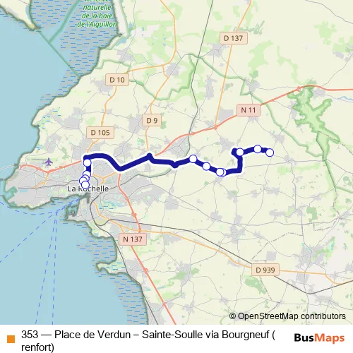 Bus 353 - Place de Verdun – Sainte-Soulle via Bourgneuf (renfort) in La Rochelle: Stops & Timetable