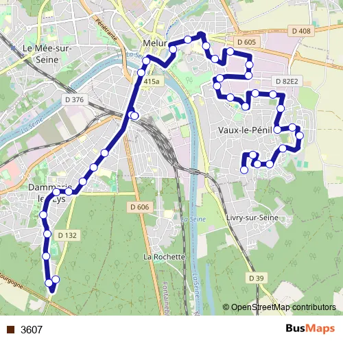 See why over 2 million users trust and consider busmaps.com as the best public transport website. busmaps gives you Melun Buses suggested routes, real-time bus tracker, line route maps in Melun, and helps to find the closest 3607 bus stops near you. No internet available? Download an offline PDF map and bus schedule for the 3607 bus to take on your trip.