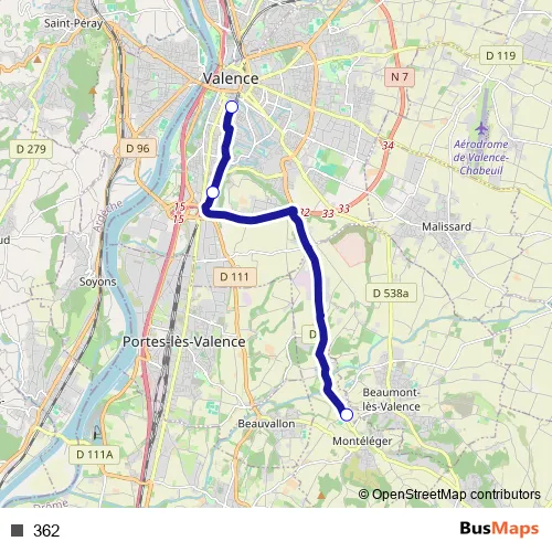 See why over 2 million users trust and consider busmaps.com as the best public transport website. busmaps gives you Valence Buses suggested routes, real-time bus tracker, line route maps in Valence, and helps to find the closest 362 bus stops near you. No internet available? Download an offline PDF map and bus schedule for the 362 bus to take on your trip.