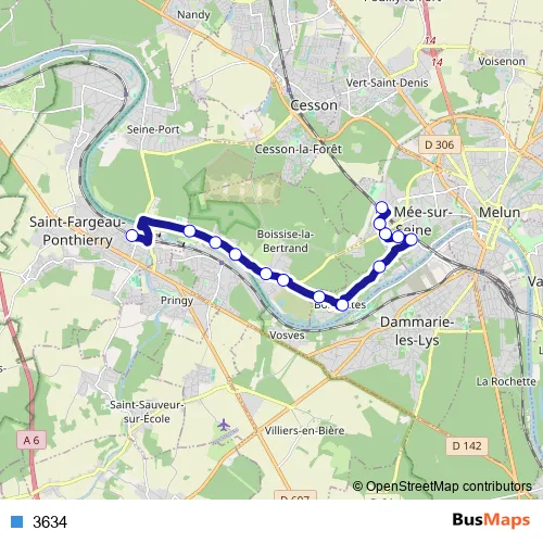 The first stop of the 3634 bus route is Gare Ponthierry-Pringy and the last stop is Gare du Mée. 3634 is operational during everyday.