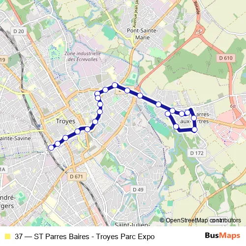 Bus 37 - ST Parres Baires - Troyes Parc Expo in Troyes: Stops & Timetable