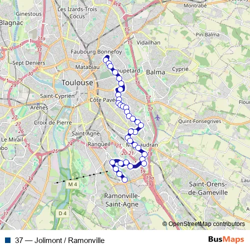 Bus 37 - Jolimont / Ramonville in Toulouse: Stops & Timetable