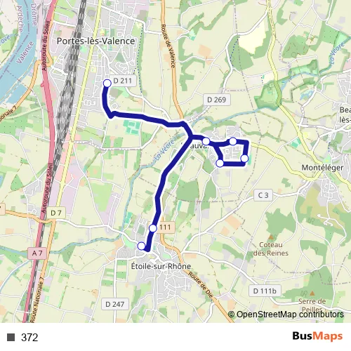 The first stop of the 372 bus route is College Jean Mace and the last stop is Jardin DE Diane. 372 is operational during on weekdays.