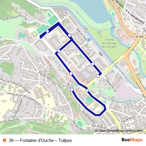 The first stop of the 39 bus route is Tulipes and the last stop is Avenue du Lac. 39 (Fontaine d'Ouche – Tulipes) is operational during everyday.