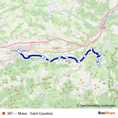 Click here to view the nearest 397 - Mane - Saint-Gaudens bus stop.