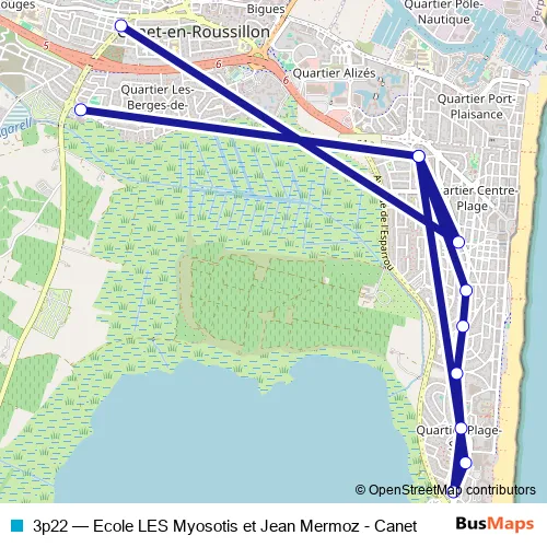 Click here to view the nearest 3p22 - Ecole LES Myosotis et Jean Mermoz - Canet bus stop.