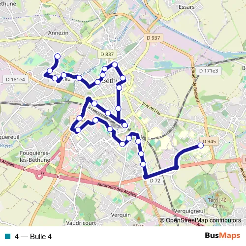 See why over 2 million users trust and consider busmaps.com as the best public transport website. busmaps gives you Bethune Buses suggested routes, real-time bus tracker, line route maps in Bethune, and helps to find the closest 4 bus stops near you. No internet available? Download an offline PDF map and bus schedule for the 4 bus to take on your trip.
