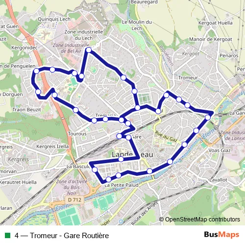 Bus 4 - Tromeur - Gare Routière in Landerneau: Stops & Timetable