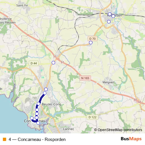 See why over 2 million users trust and consider busmaps.com as the best public transport website. busmaps gives you Concarneau Buses suggested routes, real-time bus tracker, line route maps in Concarneau, and helps to find the closest 4 bus stops near you. No internet available? Download an offline PDF map and bus schedule for the 4 bus to take on your trip.