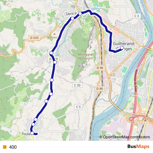 See why over 2 million users trust and consider busmaps.com as the best public transport website. busmaps gives you Valence Buses suggested routes, real-time bus tracker, line route maps in Valence, and helps to find the closest 400 bus stops near you. No internet available? Download an offline PDF map and bus schedule for the 400 bus to take on your trip.