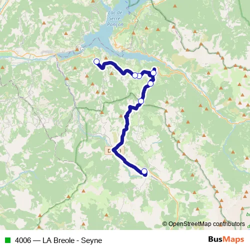 See why over 2 million users trust and consider busmaps.com as the best public transport website. busmaps gives you Ubaye-Serre-Poncon Buses suggested routes, real-time bus tracker, line route maps in Ubaye-Serre-Poncon, and helps to find the closest 4006 bus stops near you. No internet available? Download an offline PDF map and bus schedule for the 4006 bus to take on your trip.
