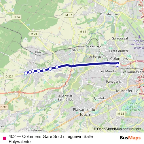 Click here to view the nearest 402 - Colomiers Gare Sncf / Léguevin Salle Polyvalente bus stop.