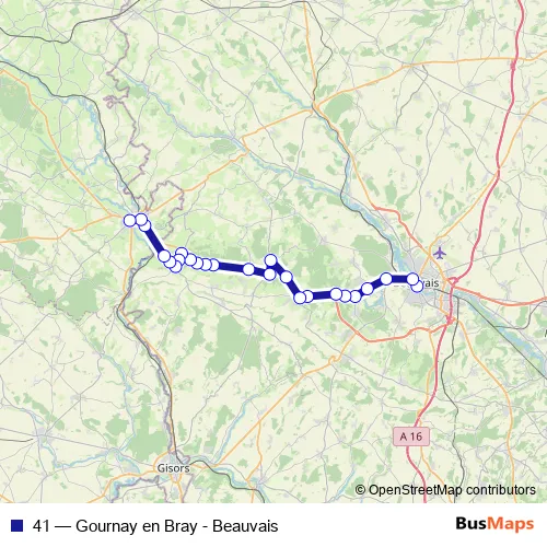 The first stop of the 41 bus route is Gare Routière and the last stop is collège Saint Hildevert. 41 (Gournay en Bray - Beauvais) is operational during everyday.