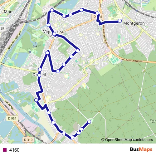 See why over 2 million users trust and consider busmaps.com as the best public transport website. busmaps gives you Evry Buses suggested routes, real-time bus tracker, line route maps in Evry, and helps to find the closest 4160 bus stops near you. No internet available? Download an offline PDF map and bus schedule for the 4160 bus to take on your trip.