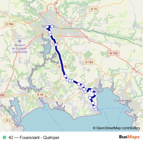 Click here to view the nearest 42 - Fouesnant - Quimper bus stop.