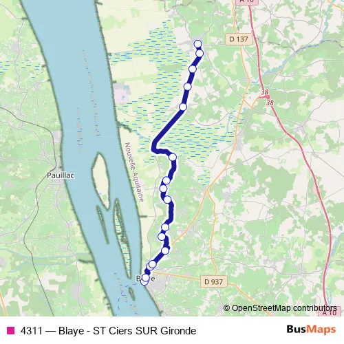 Click here to view the nearest 4311 - Blaye - ST Ciers SUR Gironde bus stop.